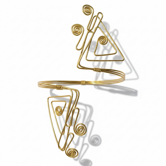 Golden Currents – Spiral Cowrie Brass Arm Cuff