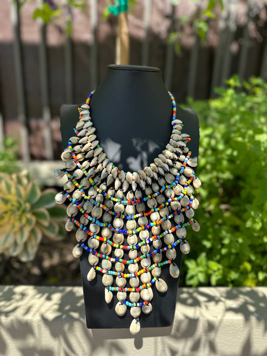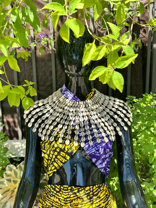 Ancestral Path – Stepped Cowrie Brass Arm Cuff