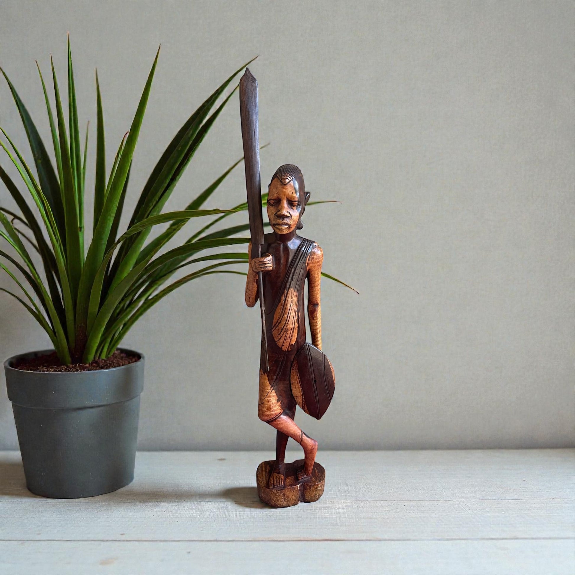 The Maasai Man statue represents a man of courage, confidence, discipline, and bravery. He is carrying a shield and spear in his hand and is prepared for battle.