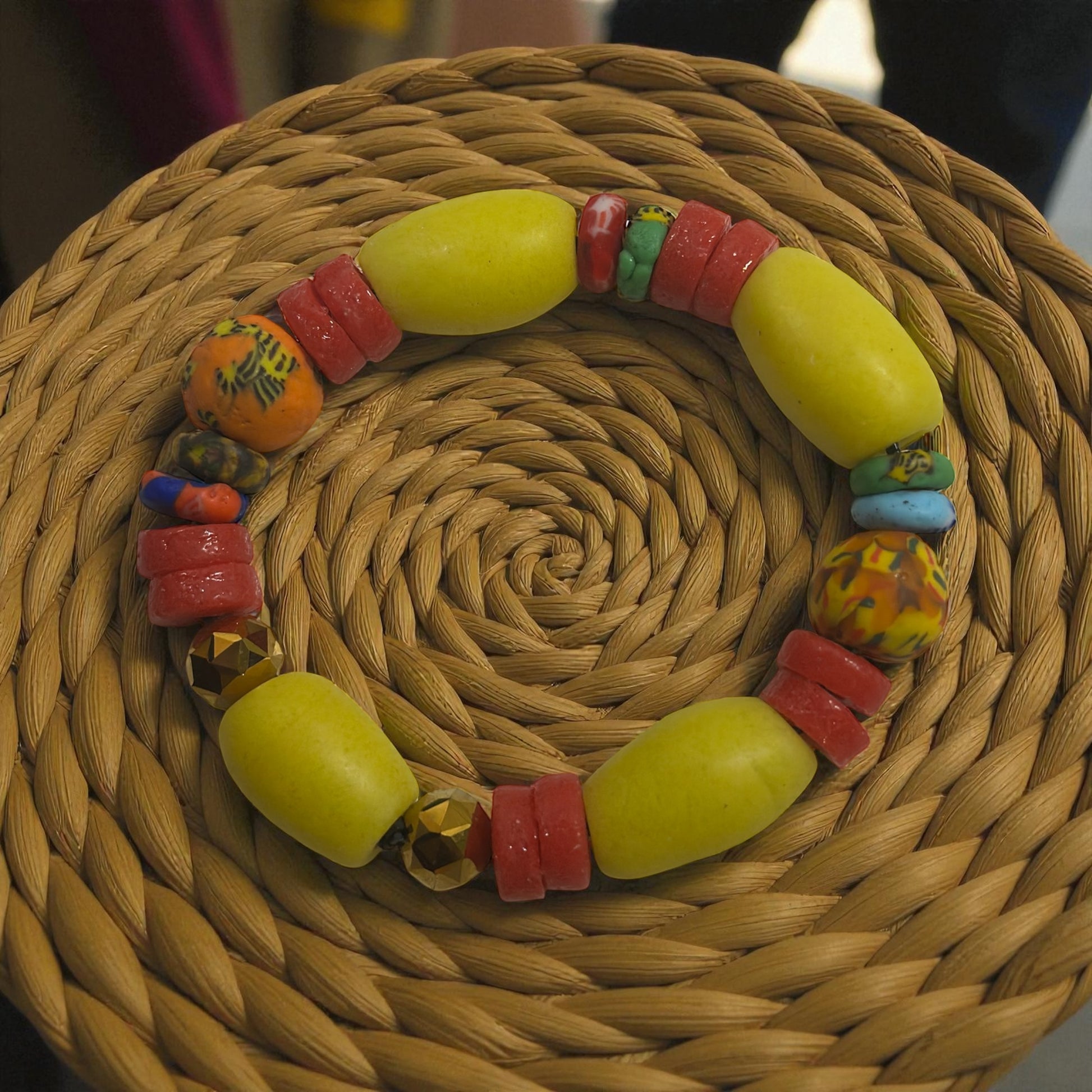 Handcrafted in Ghana, these vibrant beaded bracelets celebrate color, culture, and craftsmanship. Each bead is created using centuries-old Krobo techniques — recycled glass and clay are shaped, fired, and hand-painted by skilled artisans, transforming raw materials into wearable art.