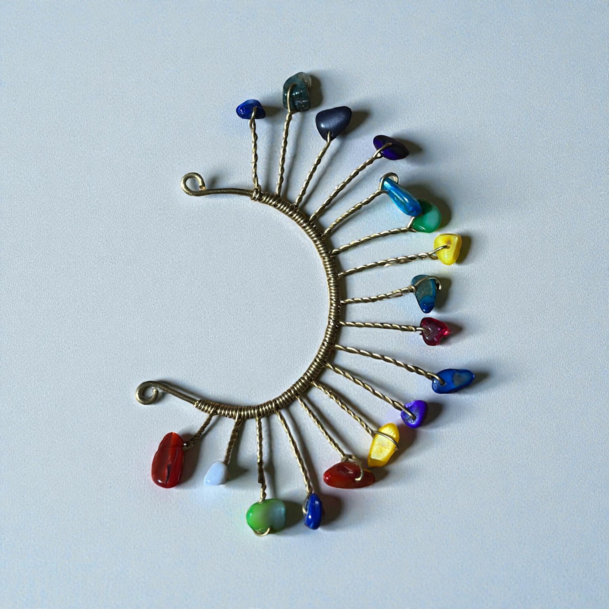 Vibrant, joyful, and full of life — the Rainbow Harmony Ear Cuff is a celebration of unity, color, and creative expression. Wrapped in brass and decorated with multi-color chip gemstones, this left-ear cuff symbolizes the beauty of diversity and the power of being your whole, colorful self.
